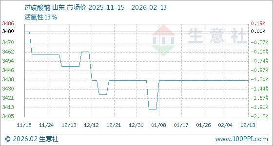 2月13日,生意社过碳酸钠基准价为3437.50元/吨,与本月初持平。