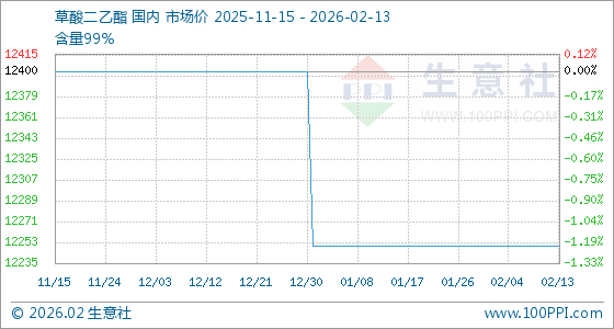 2月13日,生意社草酸二乙酯基准价为12250.00元/吨,与本月初持平。