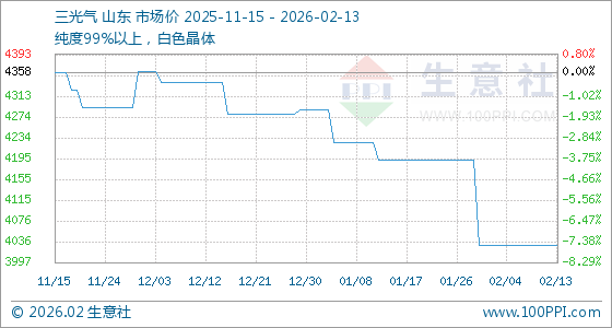 2月13日,生意社三光气基准价为4030.00元/吨,与本月初持平。