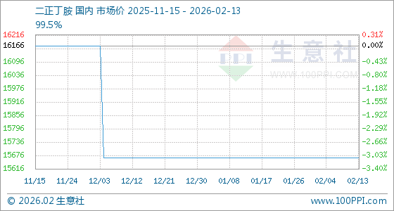 2月13日,生意社二正丁胺基准价为15666.67元/吨,与本月初持平。