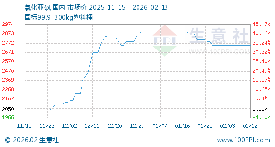 2月13日,生意社氯化亚砜基准价为2750.00元/吨,与本月初持平。