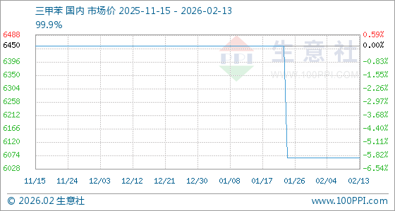 2月13日,生意社三甲苯基准价为6066.67元/吨,与本月初持平。