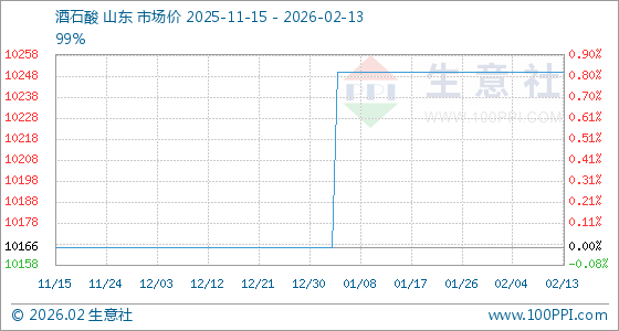 2月13日,生意社酒石酸基准价为10250.00元/吨,与本月初持平。
