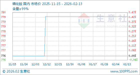2月13日,生意社碘化铵基准价为780.00元/千克,与本月初持平。