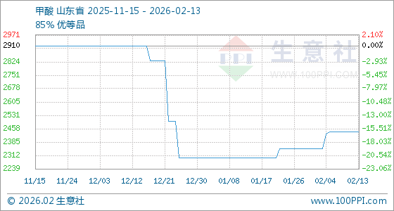 2月13日,生意社甲酸基准价为2440.00元/吨,与本月初(2350.00元/吨)相比,上涨了3.83%。