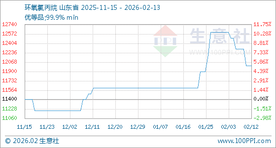 2月13日,生意社环氧氯丙烷基准价为12000.00元/吨,与本月初(12600.00元/吨)相比,下降了4.76%。