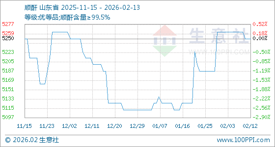 2月13日,生意社顺酐基准价为5250.00元/吨,与本月初(5262.50元/吨)相比,下降了0.24%。