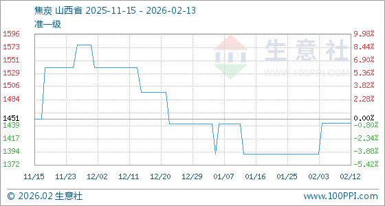 2月13日,生意社焦炭基准价为1443.75元/吨,与本月初(1391.25元/吨)相比,上涨了3.77%。