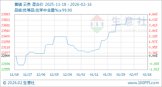 2月16日,生意社黄磷基准价为23829.33元/吨,与本月初(23712.67元/吨)相比,上涨了0.49%。