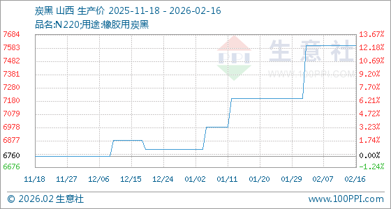 2月16日,生意社炭黑基准价为7600.00元/吨,与本月初(7200.00元/吨)相比,上涨了5.56%。