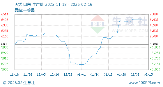 2月16日,生意社丙烯基准价为6441.00元/吨,与本月初(6404.33元/吨)相比,上涨了0.57%。