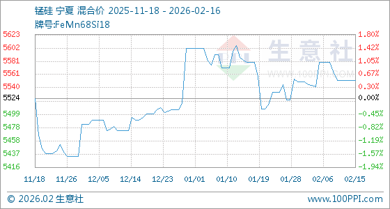 2月16日,生意社锰硅基准价为5552.00元/吨,与本月初(5550.00元/吨)相比,上涨了0.04%。