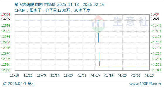 2月16日,生意社聚丙烯酰胺基准价为12960.00元/吨,与本月初持平。