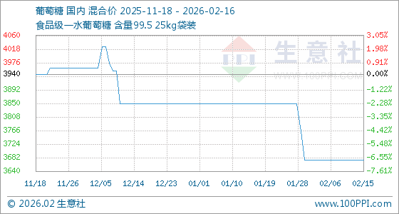 2月16日,生意社葡萄糖基准价为3675.00元/吨,与本月初持平。