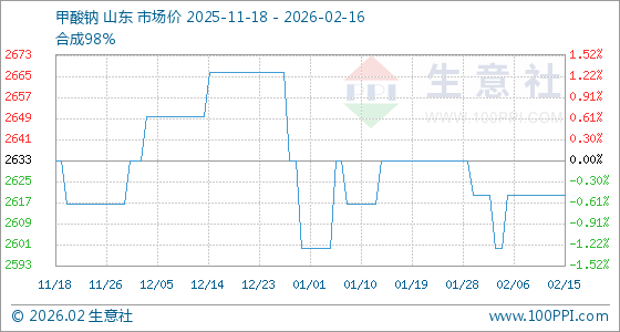 2月16日,生意社甲酸钠基准价为2620.00元/吨,与本月初持平。