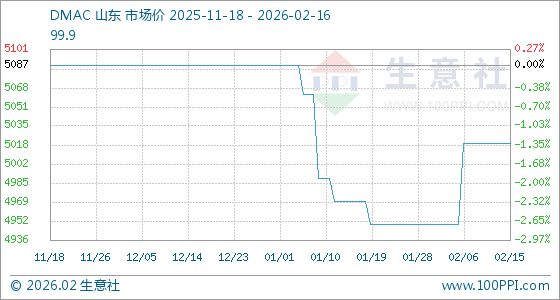 2月16日,生意社DMAC基准价为5020.00元/吨,与本月初(4950.00元/吨)相比,上涨了1.41%。