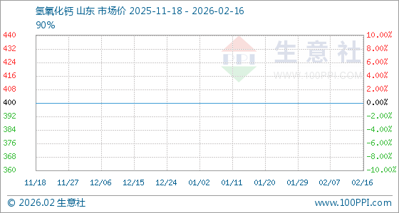 2月16日,生意社氢氧化钙基准价为400.00元/吨,与本月初持平。