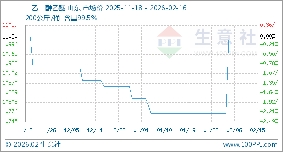 2月16日,生意社二乙二醇乙醚基准价为11033.33元/吨,与本月初(10771.43元/吨)相比,上涨了2.43%。