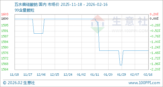 2月16日,生意社五水偏硅酸钠基准价为1578.00元/吨,与本月初持平。