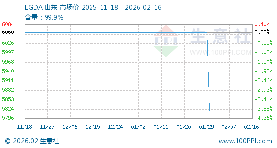 2月16日,生意社EGDA基准价为5820.00元/吨,与本月初持平。
