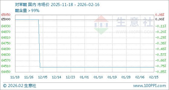 2月16日,生意社对苯醌基准价为64500.00元/吨,与本月初持平。