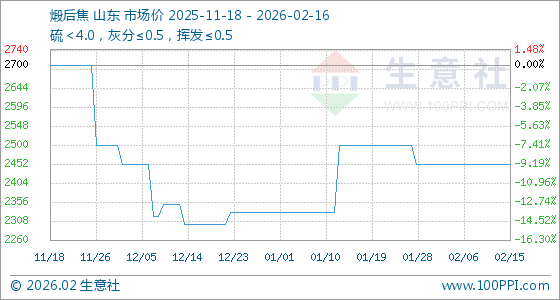 2月16日,生意社煅后焦基准价为2450.00元/吨,与本月初持平。