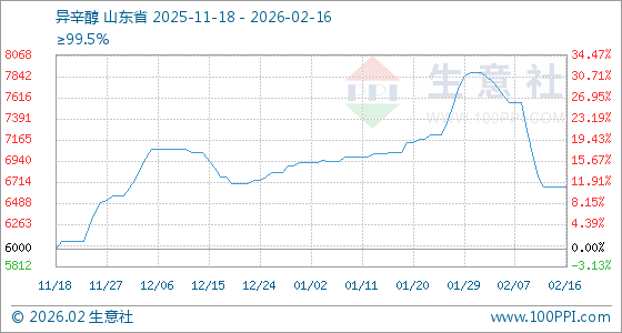 2月16日,生意社异辛醇基准价为6666.67元/吨,与本月初(7880.00元/吨)相比,下降了15.4%。