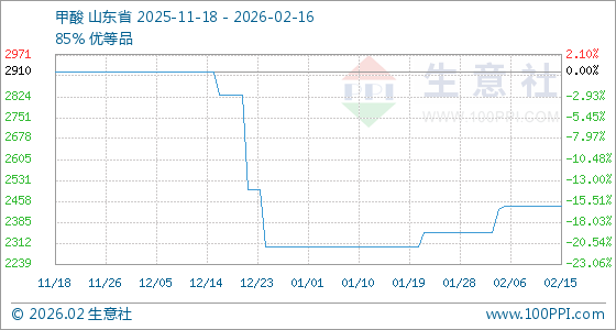 2月16日,生意社甲酸基准价为2440.00元/吨,与本月初(2350.00元/吨)相比,上涨了3.83%。