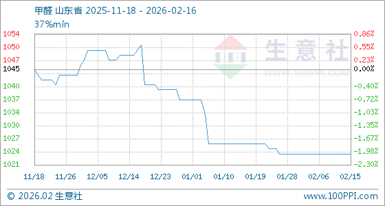2月16日,生意社甲醛基准价为1023.75元/吨,与本月初持平。