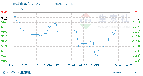 2月16日,生意社燃料油基准价为5375.00元/吨,与本月初(5362.50元/吨)相比,上涨了0.23%。