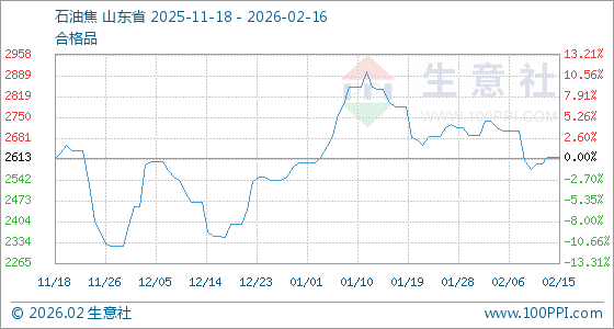 2月16日,生意社石油焦基准价为2618.25元/吨,与本月初(2691.75元/吨)相比,下降了2.73%。