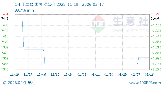 2月17日,生意社1,4-丁二醇基准价为7371.43元/吨,与本月初(7357.14元/吨)相比,上涨了0.19%。