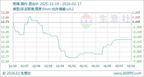 2月17日,生意社玻璃基准价为13.25元/平方米,与本月初(13.10元/平方米)相比,上涨了1.15%。