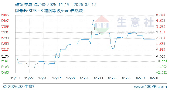 2月17日,生意社硅铁基准价为5287.14元/吨,与本月初(5324.29元/吨)相比,下降了0.7%。