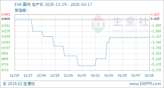 2月17日,生意社EVA基准价为10150.00元/吨,与本月初持平。