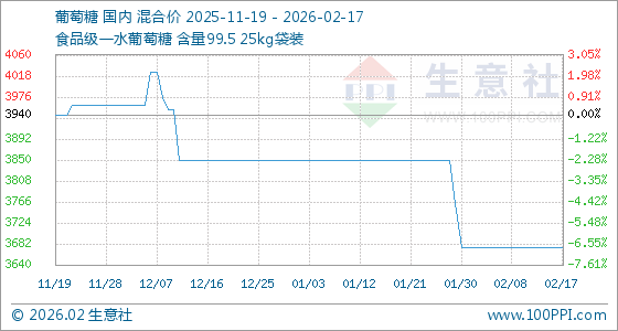 2月17日,生意社葡萄糖基准价为3675.00元/吨,与本月初持平。