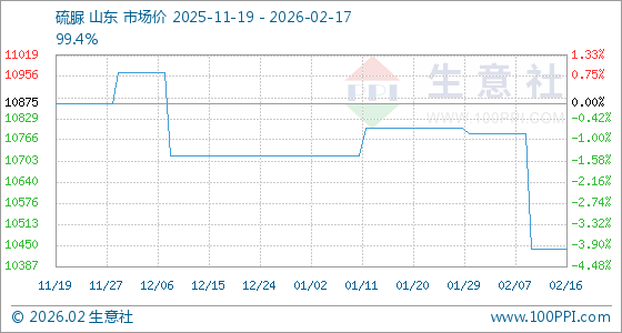 2月17日,生意社硫脲基准价为10440.00元/吨,与本月初(10783.33元/吨)相比,下降了3.18%。