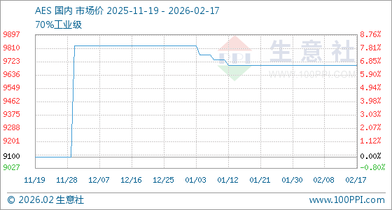 2月17日,生意社AES基准价为9700.00元/吨,与本月初持平。