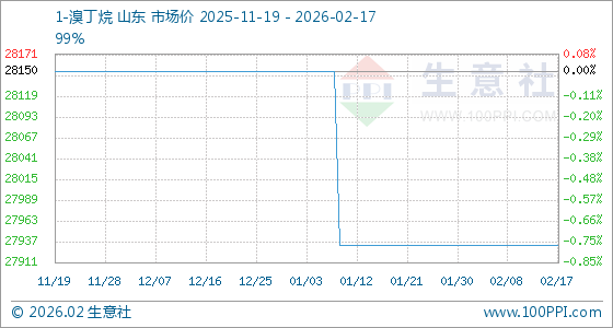 2月17日,生意社1-溴丁烷基准价为27933.33元/吨,与本月初持平。