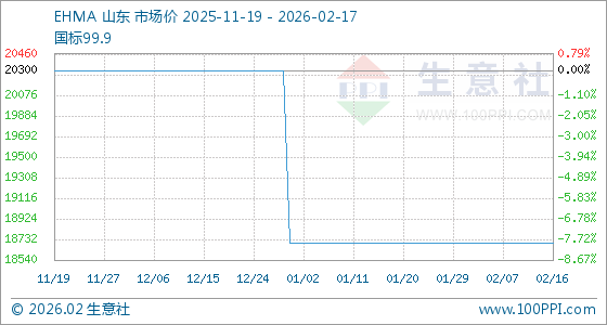 2月17日,生意社EHMA基准价为18700.00元/吨,与本月初持平。