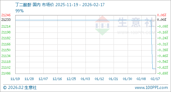 2月17日,生意社丁二酸酐基准价为21100.00元/吨,与本月初(21233.33元/吨)相比,下降了0.63%。