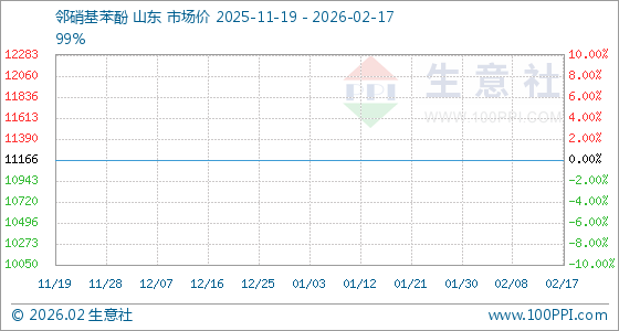 2月17日,生意社邻硝基苯酚基准价为11166.67元/吨,与本月初持平。