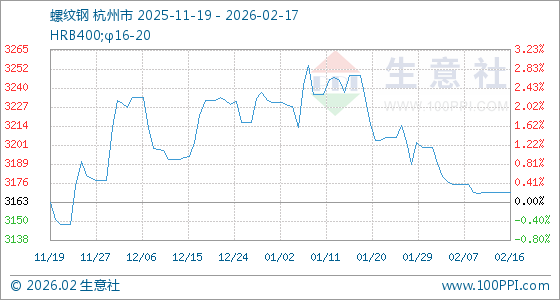 2月17日,生意社螺纹钢基准价为3170.00元/吨,与本月初(3200.34元/吨)相比,下降了0.95%。