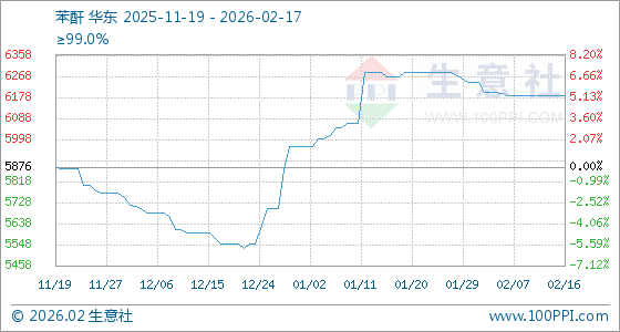2月17日,生意社苯酐基准价为6183.33元/吨,与本月初(6243.33元/吨)相比,下降了0.96%。