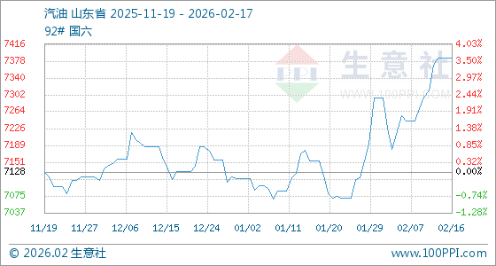 2月17日,生意社汽油基准价为7384.60元/吨,与本月初(7296.00元/吨)相比,上涨了1.21%。