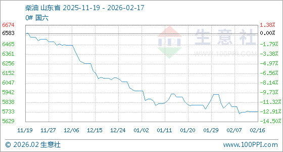 2月17日,生意社柴油基准价为5737.40元/吨,与本月初(5922.40元/吨)相比,下降了3.12%。