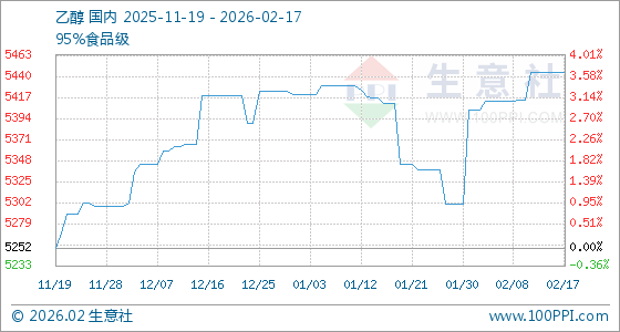 2月17日,生意社乙醇基准价为5444.45元/吨,与本月初(5403.33元/吨)相比,上涨了0.76%。