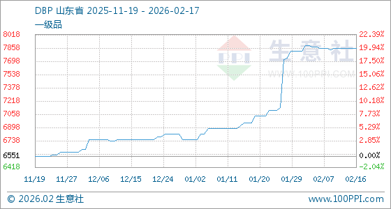2月17日,生意社DBP基准价为7851.67元/吨,与本月初(7818.33元/吨)相比,上涨了0.43%。
