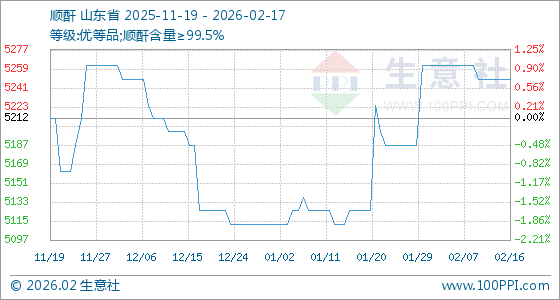 2月17日,生意社顺酐基准价为5250.00元/吨,与本月初(5262.50元/吨)相比,下降了0.24%。