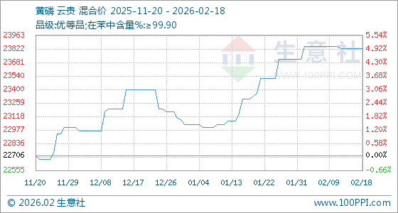 2月18日,生意社黄磷基准价为23829.33元/吨,与本月初(23712.67元/吨)相比,上涨了0.49%。